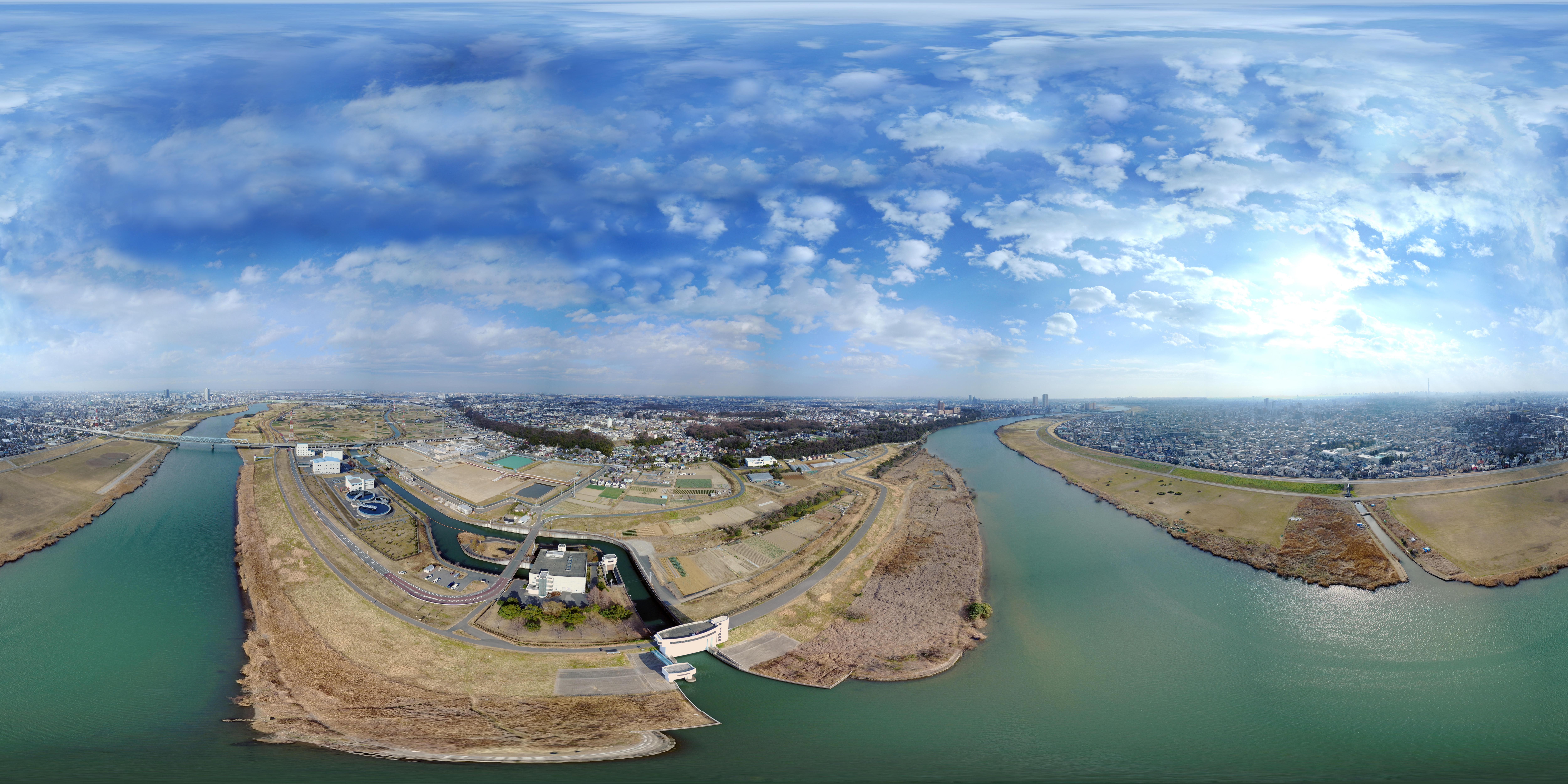 ドローンによる360°VR空撮(千葉県江戸川上空)